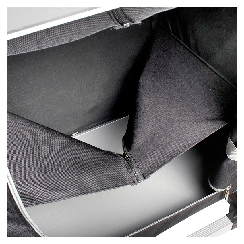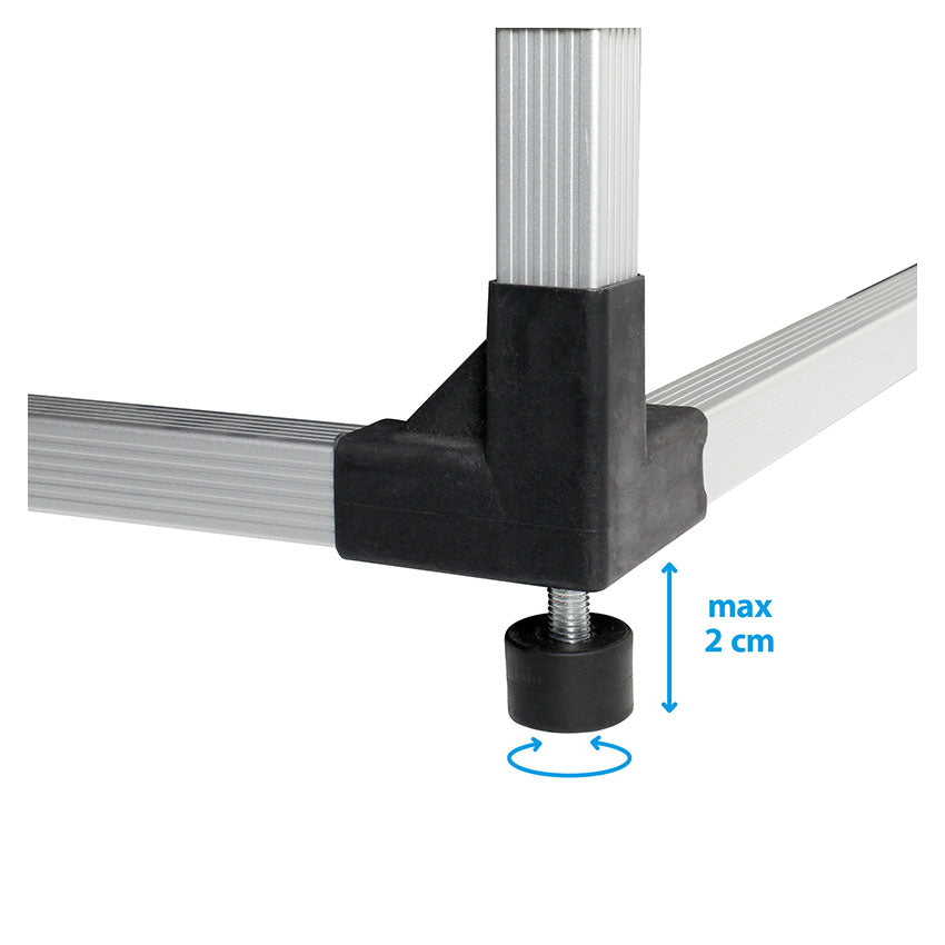 Konstrukcija je izuzetno stabilna zahvaljujući torziono otpornim pravougaonim profilima, a montaža je brza i jednostavna. U kompletu dolaze zaštita od vjetra i prskanja, kao i praktična torba za nošenje.